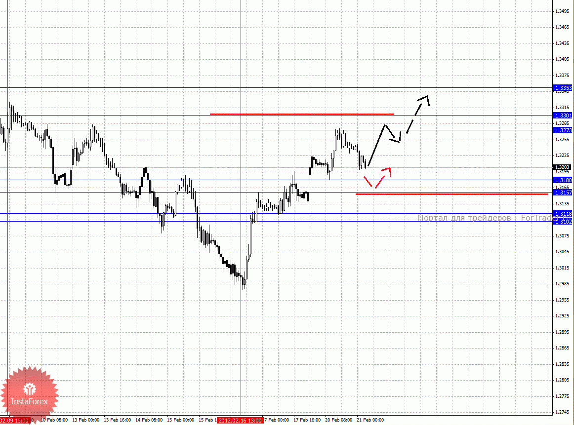 По паре Евро/Доллар важными уровнями являются: 1.3353, 1.3301, 1.3273, 1.3180, 1.3157, 1.3118 и 1.3102. Здесь краткосрочное восходящее движение, а также консолидацию, ожидаем в коридоре 1.3273 – 1.3301, пробой последнего значения должен сопровождаться выраженным восходящим движением к потенциальной цели – 1.3353, по достижении этого уровня ожидаем откат книзу. Корректировочное нисходящее движение возможно в коридоре 1.3180 – 1.3157, пробой последнего значения окажет негативное влияние на развитие восходящей структуры от 16 февраля, а данном случае потенциальная цель 1.3118. Диапазон 1.3118 – 1.3102 является ключевой поддержкой для верха и интересен с точки зрения среднесрочной перспективы.
