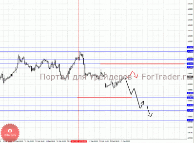 По паре Австралийский доллар/Доллар ключевыми уровнями являются: 1.0915, 1.0874, 1.0850, 1.0808, 1.0801, 1.0712, 1.0695, 1.0675 и 1.0621. Здесь мы продолжаем следить за развитием восходящей структуры от 14 февраля, однако необходимо отметить то, что на текущий момент цена близка к отмене данной структуры. Продолжения движения кверху ожидаем после прохода ценой шумового диапазона 1.0801 – 1.0808, в данном случае цель 1.0850, в коридоре 1.0850 – 1.0874 консолидация цены. Потенциальным значением для верха считаем уровень 1.0915, движение к которому ожидаем после пробоя 1.0874. Корректировочное нисходящее движение возможно в коридоре 1.0712 – 1.0695, пробой последнего значения приведет к углубленной коррекции, здесь цель 1.0675, от этого уровня высока вероятность разворота кверху, его пробой будет располагать к развитию нисходящей структуры, в данном случае потенциальная цель 1.0621.