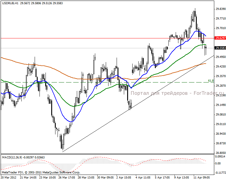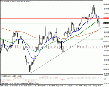 Часовой период показывает начало растущей тенденции, идет незначительная коррекция и вероятнее всего она прощупает отметку в 29.44 пунктов. Краткосрочная перспектива в отметке 29.97 пунктов.