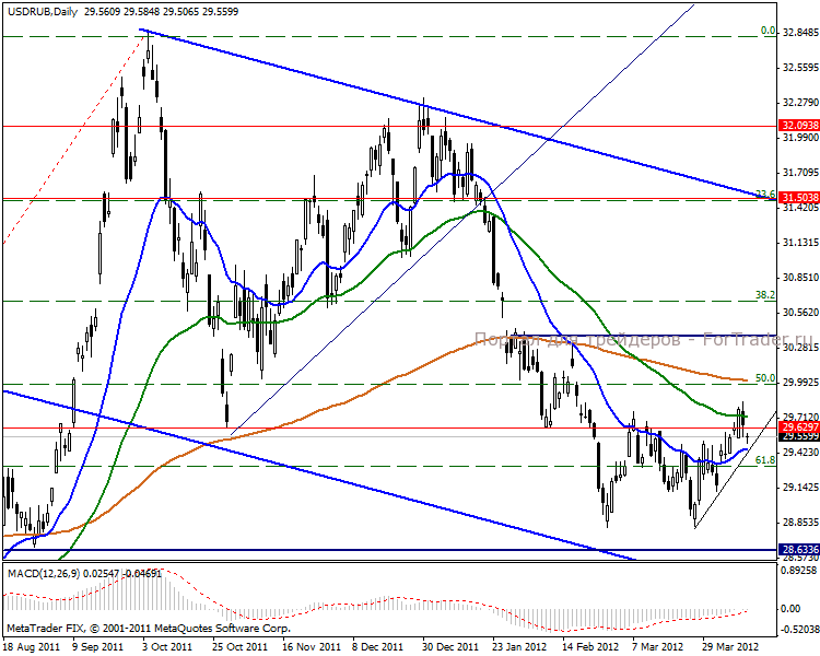 А тем временем ЦБ РФ с начала апреля 2012 года уже купил на валютном рынке более 1 млрд. долларов. Регулируя интенсивность скачков, ЦБ покупает от 100 до 200 млн. долларов в день. В марте текущего года ЦБ РФ купил валюту на 3 млрд. 927 млн. долларов. Таким образом, создаются условия для прекрасных лонговых позиций.