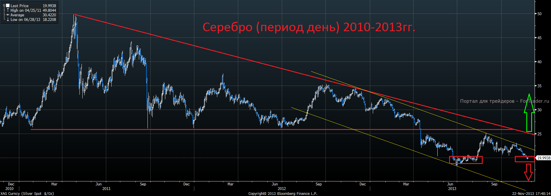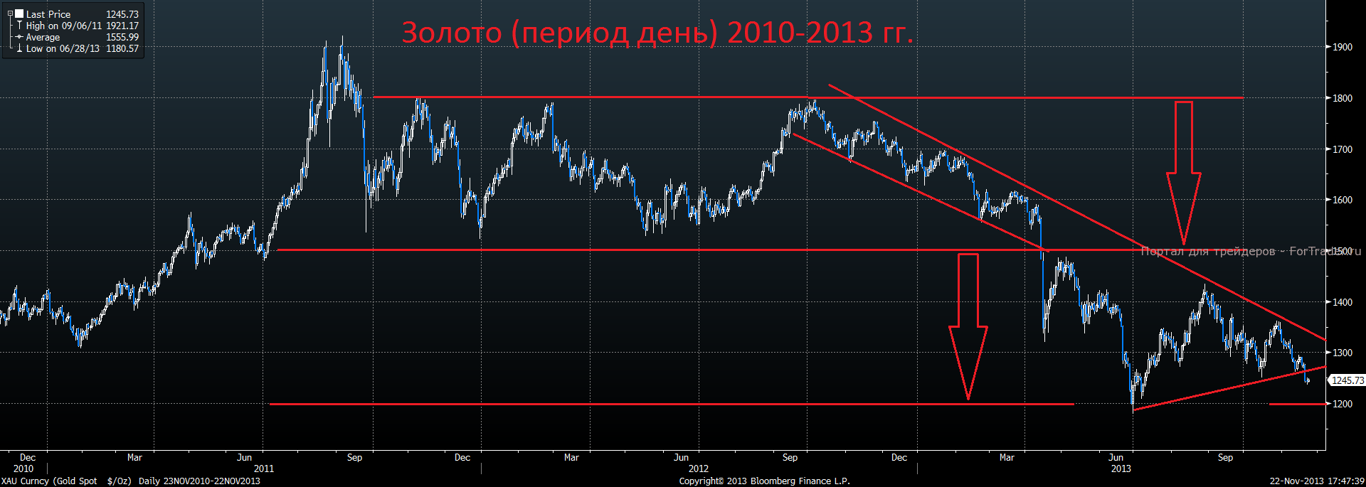По технике, можно аккуратно присматриваться к покупкам золота вблизи отметки 1200$, однако мы рекомендуем всё же дождаться пятницы и выхода данных с рынка труда в США. Если данные окажутся сильными, то это явно усилит ожидания сокращения программы QE-3 уже в декабре и на этом золото может сделать свой финальный аккорд вниз с пробоем отметки 1200. При выходе слабых данных, золото и серебро также можно будет покупать по факту. Мы считаем, что формировать среднесрочные длинные позиции в золоте в диапазоне 1100-1200$ с горизонтом от 2-3 месяцев это хорошая инвестиционная идея. Неопределённость с потолком госдолга в США и политические риски заставят в скором будущем вновь обратить внимание на драгоценные металлы. Оставляем свою прежнюю рекомендацию удерживать короткие позиции по ключевой валютной паре евро-доллар с целью 1.33. Стоп по ранее открытым позициям смело можно ставить на отметку 1.361.