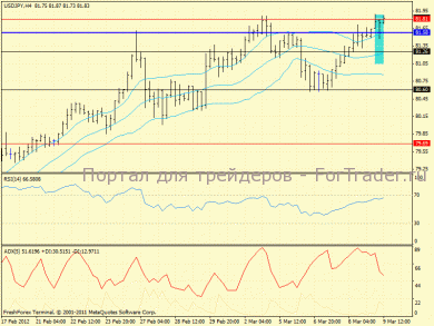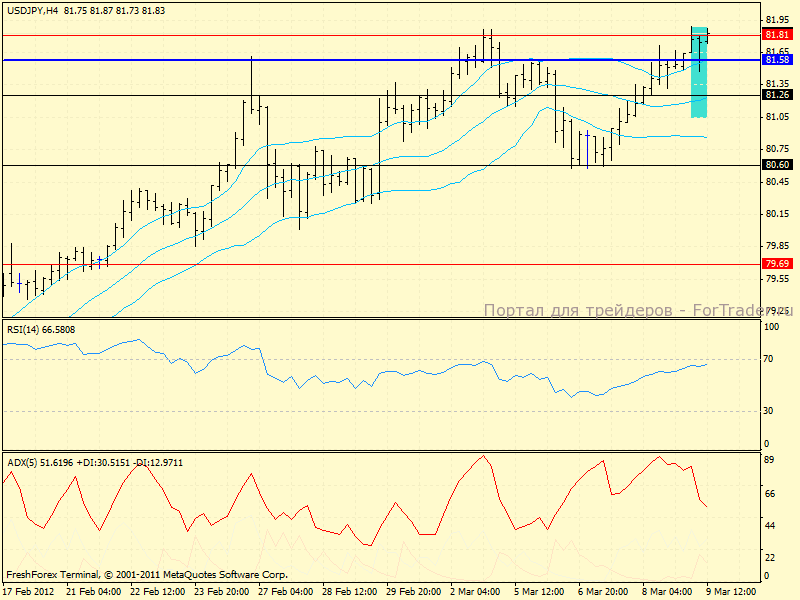 На 4х-часовом графике цена дала достаточно сильный сигнал для покупок — длинноногий пинбар по тренду. Индикаторы пока не поддерживают трендового характера движения в рамках этого фрейма. Можно предполжить, что развите роста получит поддержку, если быки выведут цену выше психологического уровня 82.00. Если будет обновлен лоу пина, то тенденция развернется на нисходящую. Итак, продажи ниже 81.47 и покупки выше 82.00. Пара относительно маловолатильна, поэтому сделки среднесрочные. Дневные цели порядка 30-50 пунктов.
