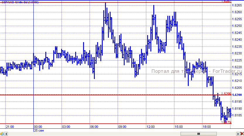 Фунт/доллар торговые сутки во вторник закончил с потерями. В начале дня пара предпринимала попытки к росту, но выше уровня 1,6267 подняться так и не смогли. В результате цены начали постепенно снижение, в рамках которого смогли преодолеть поддержку 1,6200 и к завершению дня подошли на уровне 1,6179.