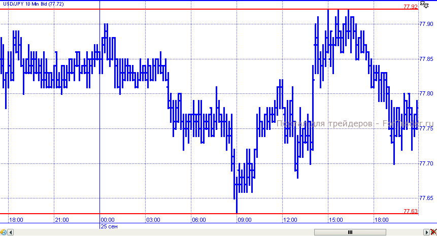 Пара доллар/иена, как и предполагалось, продемонстрировала самую сдержанную динамику. Котировки удерживались в пределах диапазона, ограниченного уровнями 77,63 – 77,92. Торговые сутки пара завершила на уровне 77,75.