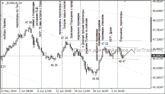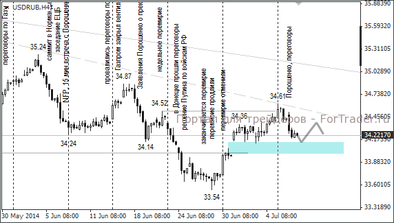Вчера произошло одно событие, которое могло оказать поддержку российскому рублю. Мэр Донецка сообщил, что П. Порошенко предложил провести переговоры с ДНР, ЛНР и Россией в Святогорске (Донецкая область).