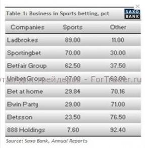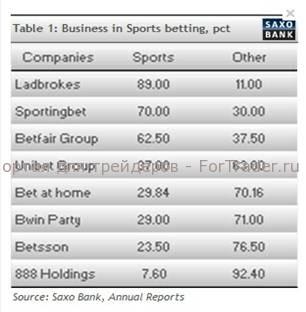 Если вы делаете ставку на исход Олимпийских игр, ваши шансы на удачу непредсказуемы. А если поставить на акции букмекерских компаний? Приближаются Олимпийские игры, Чемпионат Европы по футболу, Уимблдон и Тур де Франс — нельзя упускать прекрасную возможность подзаработать на этом. Да, лето обещает быть интересным и спортивным. В таблице 1 вы можете увидеть букмекерские компании, отсортированные с учетом того, насколько активно они работают со спортивными событиями.В таблице хорошо видно, что три из них активно работают со спортивными мероприятиями, еще четыре также неплохо представлены в спортивном сегменте, а остальные 888 пока еще слишком малы, но обладают потенциалом к росту. Обратите внимание на компанию Ladbrokes (LBDKF), которая в отличие от других конкурентов, присутствует не только в киберпространстве, но и реальном мире.