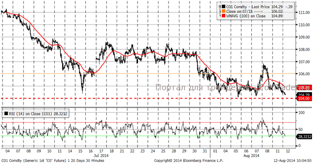 Психологический уровень поддержки цен на нефть достигнут. Высока вероятность коррекционного движения вверх к $106 за баррель. Ждём разворота в ближайшие торговые сессии.