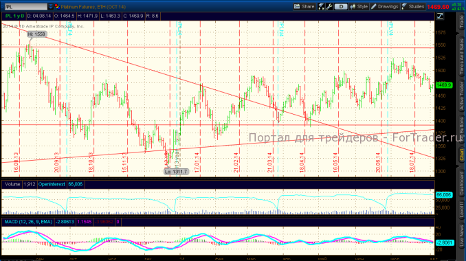 Рынок платины под влиянием выросшей волатильности на рынке золота снижался до уровня 1456$, но вновь подрос до уровня 1470$. Спрэд между золотом и платиной существенно сузился.