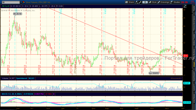 Ближайшие уровни поддержки в серебре – 20,3-19,9$, уровни сопротивления – 20,5-20,8$.