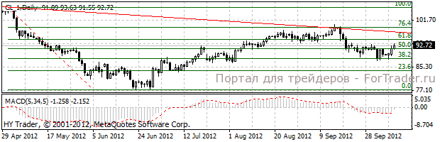 Накануне фьючерсы на нефть показали максимумы на $93.66. Выше быки направятся к $93.85 (максимум 21 сентября). Ближайшая поддержка остается у минимума 8 октября $88.20. Следующей поддержкой выступает область $87.70/60 (минимум 3 августа), преодоление которой откроет дорогу на $87.00.