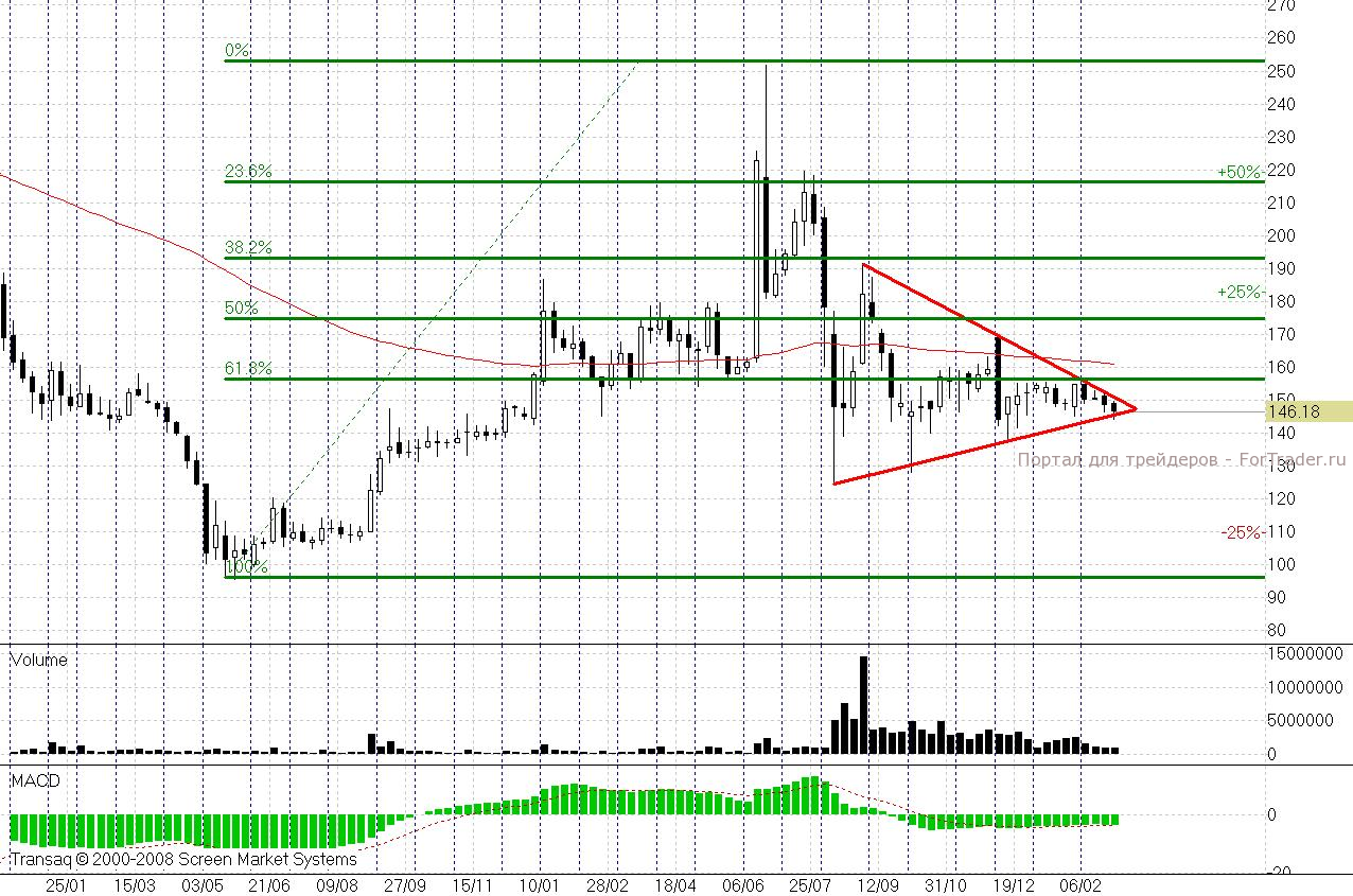 Оправдается ли мое эмпирическое виденье фигуры – покажет время. Но, ориентируясь на другие показания технического анализа, можно понять, что пока бумаги ниже 155/160 рублей, «быкам» в них комфортно не будет.