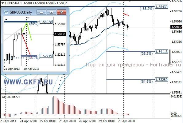 Пара EURUSD поднялась к уровню 1,3100 и торгуется возле него. Первый фактор, который может значительно повлиять это заседание ФРС в среду. Сегодня могут оказать влияние на пару данные по безработице в Еврозоне. Попытаемся на этом заработать. На эту неделю традиционно рассматриваю два варианта возможного движения цены, основной красный и альтернативный зеленый. Значимые уровни на сегодня отмечены на часовом графике. Индикатор АО находится в положительной зоне и снижается, указывая на коррекцию перед возможным дальнейшим ростом. Индикатор тренда указывает на рост. Sell от 1.3100 или выше со стопом 1,3120. Цель 1,3060. Не забываем ставить безубыток при первой же возможности.