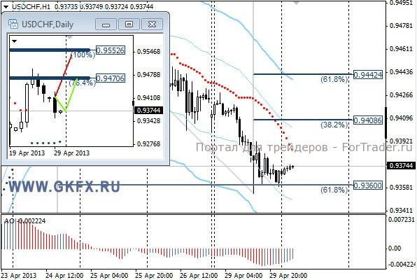 Пара USDCHF вчера перевыполнила план ожиданий и снижалась даже ниже. Сегодня хорошая возможность купить, в расчете на откат вверх. На этой неделе по традиции рассматриваю два варианта возможного движения цены, основной красный и альтернативный зеленый. Значимые уровни на сегодня отмечены на часовом графике. Индикатор АО находится в отрицательной зоне и растет, указывая на коррекцию перед возможным продолжением снижения. Индикатор тренда указывает на снижение. Зайдем против индикаторов. Buy 0.9370 или ниже со стопом 0,9355. Цель 0,9410. Не забываем ставить безубыток при первой же возможности.