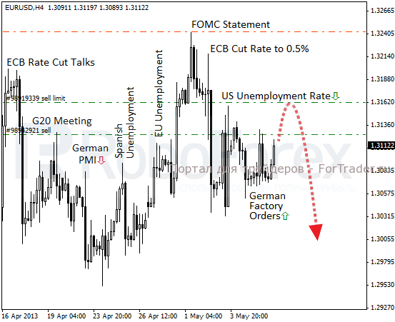 Поздно вечером во вторник стало известно о полном провале потребительского кредитования в США. Показатель вышел на уровне $8 млрд, хотя ожидания были ровно в два раза выше, что сдержало в итоге рост доллара. В среду определяющими станут данные по промышленному производству в Германии. Прогнозируется сокращение в районе 0,1%. Если итоговая статистика окажется лучше, мы получим продолжение боковой коррекции. Если же, по примеру Франции, последует обвал, то евромедведи получат шанс на возобновление нисходящего тренда.