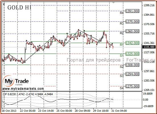 Тактика на сегодня следующая: Преодоление контрольной точки 1335,0 даст возможность входить в продажи с целями 1330,0, 1325,0 и 1320,0.