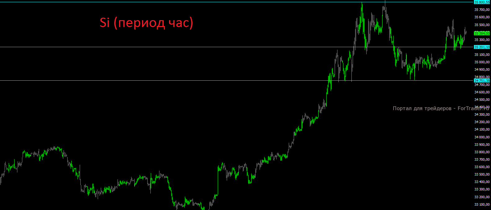 Если посмотреть на локальную картину фьючерса на валютную пару доллар-рубль, то прекрасно видно, как в понедельник вновь второй раз подряд устоял уровень поддержки на отметке 352000 и пока техническая картина продолжает развиваться не в пользу рубля. Если к оттоку капитала наложится падение цен на нефть и укрепление доллара на мировой арене, то рубль может ещё запросто потерять 4-5% и выйти за пределы отметки 36 в паре с долларом, а именно такой сценарий наиболее вероятен в ближайшие два месяца.