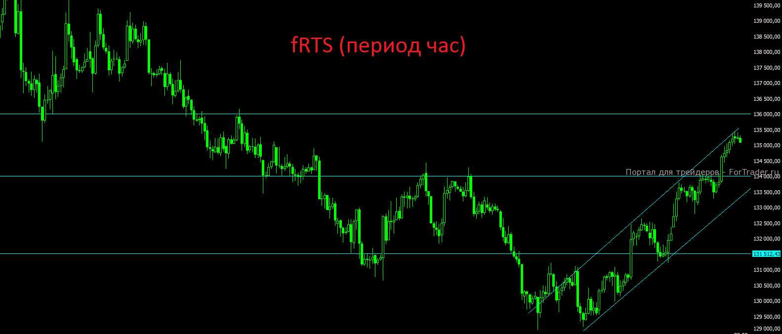 Фьючерс на индекс РТС ещё в рамках вчерашней торговой сессии пробил хорошим импульсом сопротивление на отметке 134000 пунктов и теперь возможно мы увидим тест данного сопротивления в качестве поддержки. Не исключён поход к отметке 136000, где мы также рекомендуем пробовать открывать короткие позиции. Только при пробое отметки 133500 и закрытии дня ниже неё, можно будет говорить о сломе восходящего локально тренда.