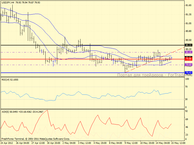 4х-часовой график: пара торгуется выше обоих часовых средних. Предполагаю повышательный флет сегодня, с диапазоном 79.88-80.20.