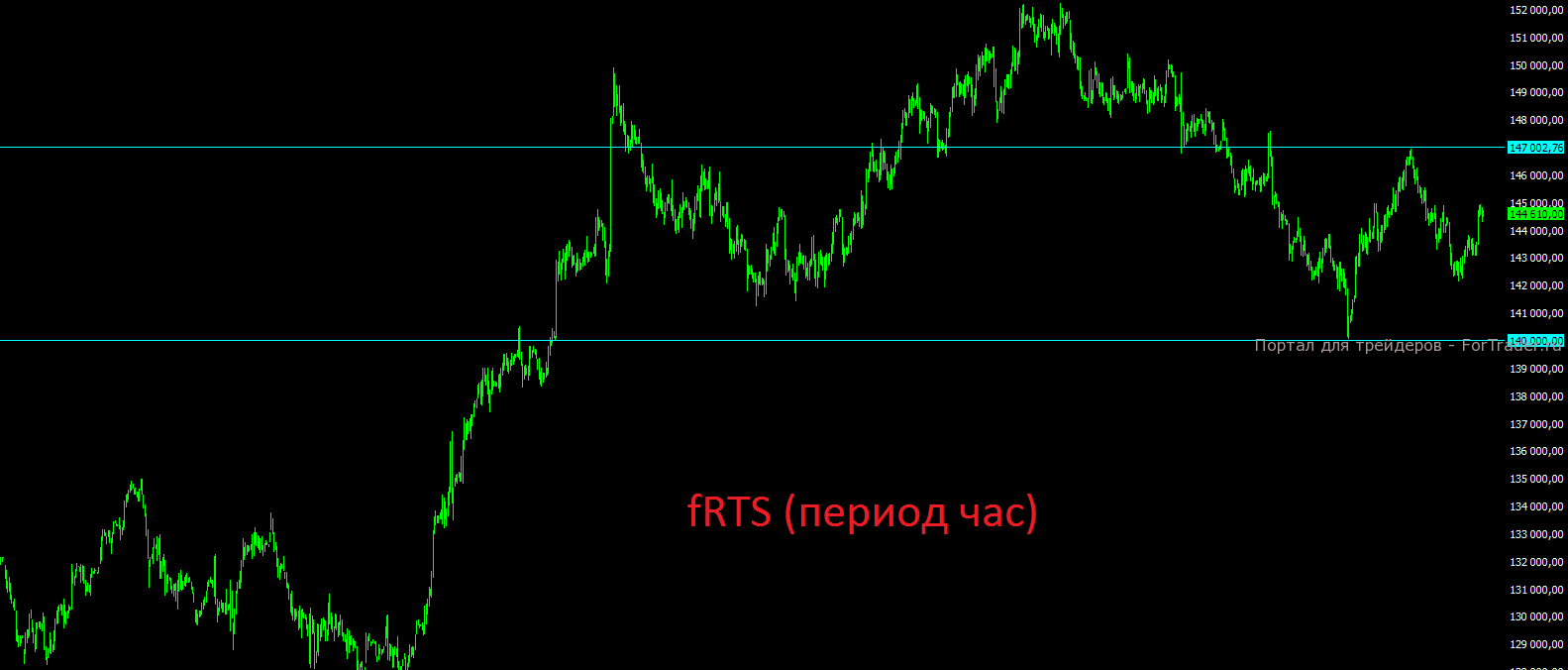 Ну и напоследок, фьючерс на индекс РТС. Здесь пока царит полная неопределённость для спекулянтов. На текущий момент мы рекомендуем открывать короткие позиции при пробое вниз отметки 142000 или 140000 со стопом в 1% или при отбое от отметки 147000. В существенный выход вверх, выше отметки 147000 пока не верим.