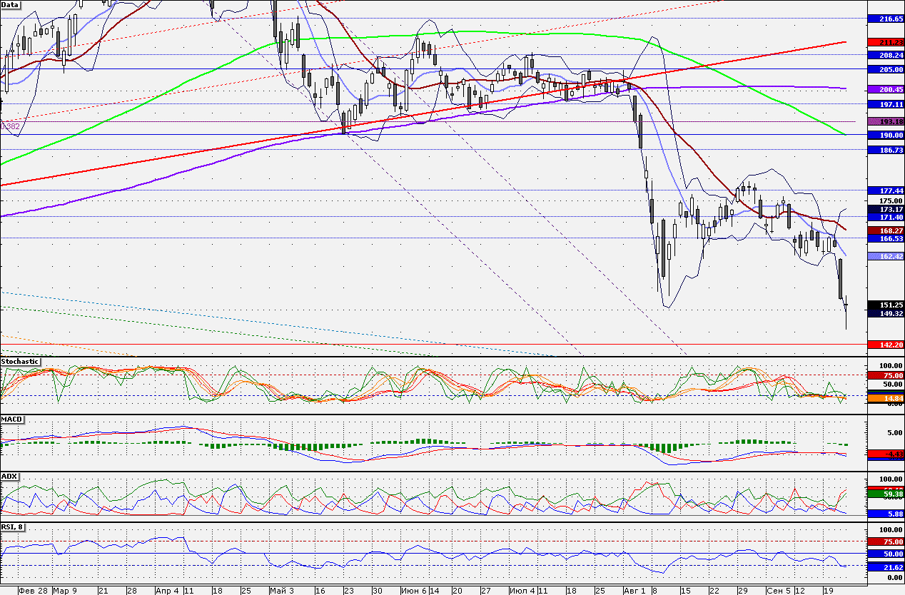Ближайшие уровни поддержки: 150,00/145,50/145,00/142,50