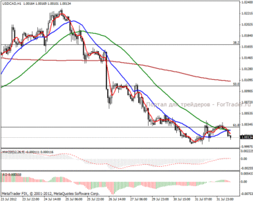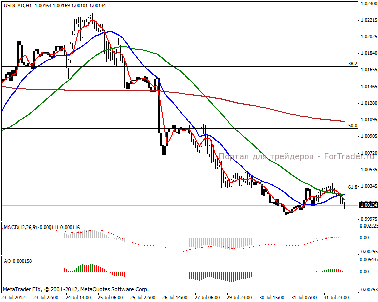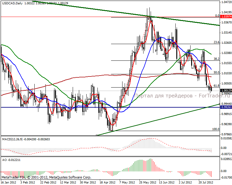 Фундаментальный фон достаточно позитивный, поэтому краткосрочная перспектива заключается в укреплении канадской валюты. На часовом графике видим поглощение зарождающегося роста, в данный момент цена находится на 61.8% коррекционном уровне Фибоначчи в понижательной тенденции. Рекомендуем вставать в продажи.