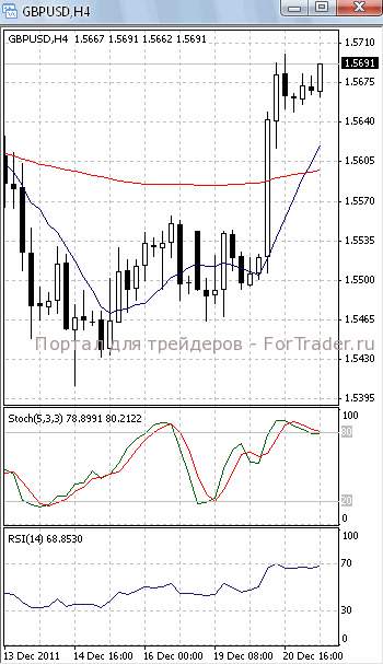 Цены приближаются к уровню сопротивления 1.57. Если и он будет пройден, стоит ждать дальнейшего роста, первичной целью которого, скорее всего, станет отметка 1.5770. В пользу такого исхода позволяет говорить то, что на 4-х часовом графике (рис.1) МА (10) устремлена вверх. В ту же сторону развернулась и МА (100). К тому же, скользящие средние сформировали бычье пересечение. Вверх развернулся и осциллятор RSI.
