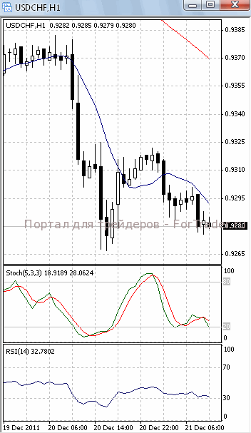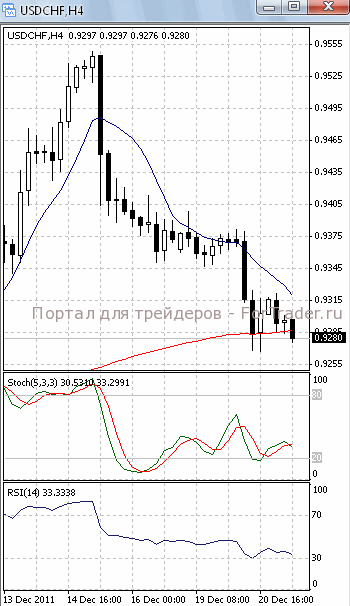 Цены стремятся к уровню поддержки 0.9270. Если он будет пройден, продолжится падение, первичной целью которого, скорее всего, станет отметка 0.9240. О возможности такого исхода позволяет говорить то, что на 4-х часовом графике (рис.1) МА (10) уверенно устремлена вниз. В медвежьем направлении развернулись и оба осциллятора. В то же время МА(100) направлена вверх. Поэтому не стоит полностью исключать возможность возобновления роста цен.