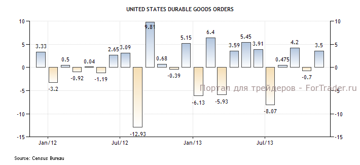 Заказы на средства производства без учета самолетов и военного оборудования, индикатор капиталовложений бизнеса — выросли на 4,5% м/м, при прогнозе повышения на 0,7%. Заказы на коммерческие самолеты подскочили в ноябре на 21,8%, заказы на автомобили выросли на 3,3%. Более значительный рост заказов говорит о восстановлении бизнес-инвестиций в США в четвертом квартале этого года.