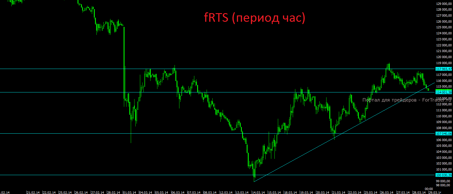 Если брать локальную картину и часовой период фьючерса на индекс РТС, то здесь, как я уже дал понять выше, есть предпосылки прокола уровня и формирование длинной позиции с целью отскока 2-3%. Пока я не увижу закрытие дня ниже отметки 114000, я буду локально смотреть вверх, но не выше отметки 118000. Почему не выше 118000? Потому что на дневном периоде я со среды вижу как крупный игрок(и) распродают все длинные позиции и возможно набирают короткую. В случае закрытия дня ниже отметки 114000 откроется дорога для дальнейшего снижения с целями 107000 и 100000 пунктов.