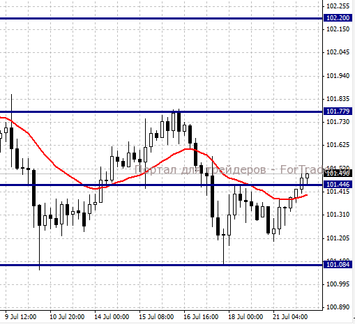 Покупать при отбое от уровня 101,44 с целями 101,77 и 102,20. Стоп-лосс = 101,00. Индекс деловой активности во всех отраслях промышленности Японии в мае вырос на 0,6%(м./м.) при прогнозе +0,7%(м./м.). Более слабая оценка показателя окажет давление на курс национальной валюты. Между тем, стоит учитывать возобновление спроса на йену в качестве защитного актива при обострении геополитической ситуации в мире.