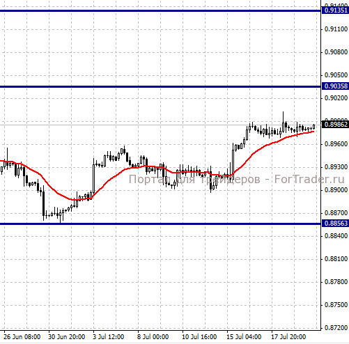 Покупать сейчас с целями 0,9035 и 0,9135. Stop-Loss = 0,8940. Текущая цена = 0,8986. Торговый баланс Швейцарии в июне снизился с 2,85 млрд. до 1,38 млрд., оказавшись хуже консенсус-прогноза в 2,97 млрд. Снижение чистого экспорта, входящего в структуру ВВП Швейцарии, окажет давление на курс национальной валюты.
