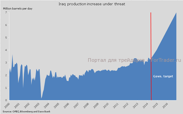 После резкого скачка цен на нефть, произошедшего на предыдущей неделе, сохраняется повышательная тенденция. Причина — в обострении ситуации в Ираке. К сожалению, эта страна пополнила длинный список нефтедобывающих стран, в которых добыча уже сократилась или находится под угрозой сокращения.