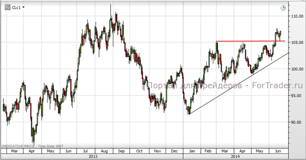 Только в случае прорыва уровня 111 долларов за баррель на графике нефти сорта Brent и 105 долларов — по нефти WTI можно будет говорить о том, что напряжение спало. Если угроза дефицита предложения материализуется, то цены могут вернуться к максимумам 2011 и 2012 годов выше 125 долларов за баррель.