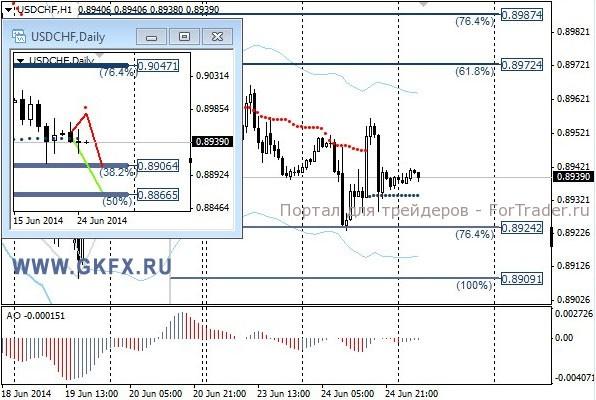 Пара USDCHF исполнила сделку по рекомендации на продажу по 0,8950. Первая цель была достигнута, вторую цель не зафиксировало спрэдом, можно было закрыть руками. Стоп можно было перенести на уровень безубытка. Ситуация по паре пока спорная, поэтому ожидаем развития ситуации для последующих решений. На эту неделю традиционно рассматриваю два варианта возможного движения цены, основной красный и альтернативный зеленый. Значимые уровни на сегодня отмечены на часовом графике. Индикатор АО находится у нуля, указывая на неопределенность. Индикатор тренда указывает на рост. Вне рынка.