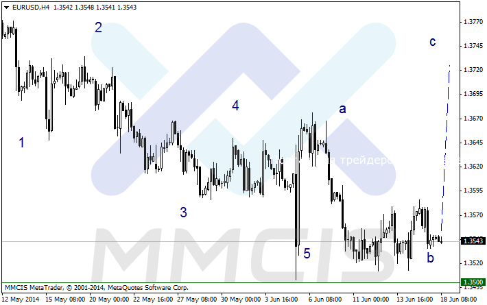 По мнению аналитиков, особое внимание следует обратить на локальное сопротивление 1.3600, пробой которого откроет дорогу для роста единой валюты. Таким образом, основной сценарий предполагает рост в направлении отметки 1.3750 в рамках волны «c». В качестве альтернативного сценария рассматривается пробой уровня поддержки 1.3500, после чего нисходящий тренд может возобновиться.