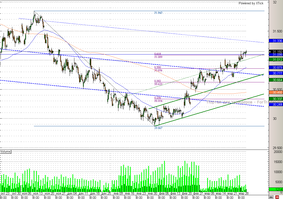 Сегодня рубль снова пытался обновить годовые минимумы и уйти ниже 31,15, но регулятор не дал ему это сделать. Теперь, вероятно, российскую валюту ждет краткосрочное укрепление и поход в район 30,85.