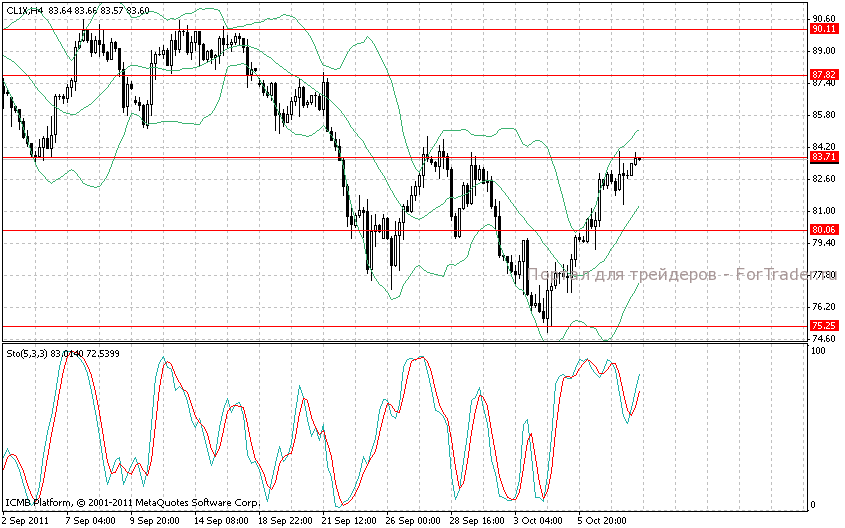 В понедельник нефть пробила отметку 83,00 и подходит к 84,00, рост выше которой повышает вероятность формирования продолжения восходящего канала. Тем не менее, вероятность развития событий небольшая, так как рост только частично поддержан новостным фоном – данными по состоянию экономики США и Канады. В начале недели можно ожидать снижения от уровня 83,00 с целью 81,00.