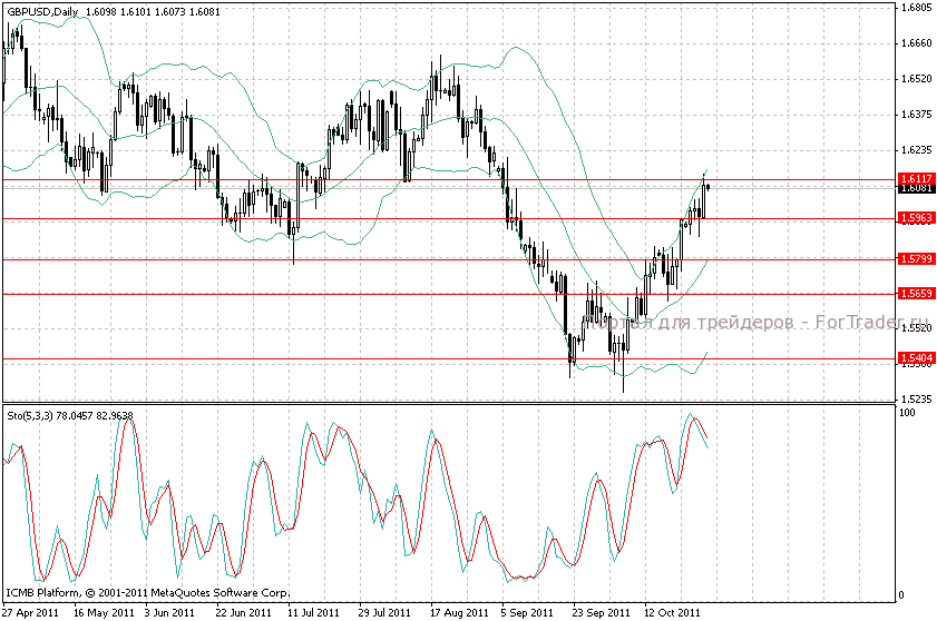 Министр финансов Великобритании заявил о том, что стране понадобится дополнительный капитал для местных банков, после того, как аналогичная работа будет проведена по банкам Европы. Игроки никак не отреагировали на новость, по инерции продолжились покупки, которые вывели пару в район 1,6117. Тем не менее, технические индикаторы сигнализируют о скором развороте тренда и возможности коррекции к 1,6000.