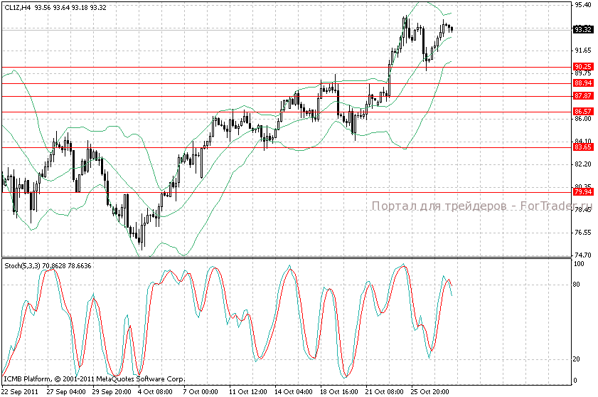 Нефть испытывает сильное давление в районе 93,30-94,00, для дальнейшего роста не хватает новостей о сокращении запасов сырья на складах в США. Тем не менее, и этот новостной фон может угасать, в конце недели игроки будут закрывать длинные позиции. Стоит рассматривать продажи с районом 92,00.