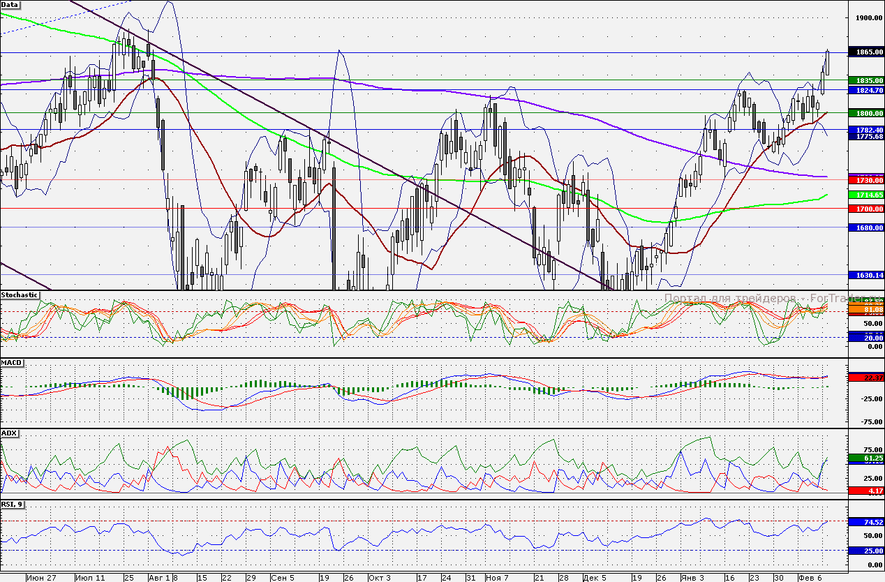 Ближайшие уровни поддержки: 1850,00/1825,00/1810,00/1800,00