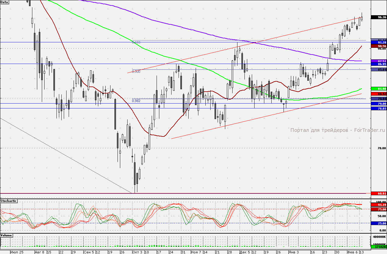 Ближайшие уровни поддержки: 95,00/92,50/91,28/90,56/90,00/87,51