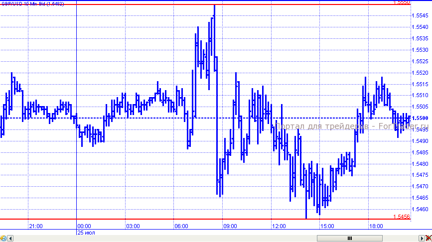 В течение торговых суток в среду пара крутилась вокруг уровня 1,5500, то фиксируясь выше него, то скатываясь вниз за его пределы. Внутридневной максимум фунт/доллар отметил на уровне 1,5550, от которого впоследствии спикировал к 1,5456. Но к завершению дня цены восстановили часть потерь и снова вернулись к отметке 1,5500, в районе которой и начали среду.