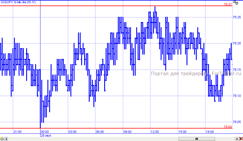 Пара доллар/иена снова борется за звание чемпиона невозмутимости, оставаясь безразличной к европейским перипетиям. В течение всех торговых суток среду цены по-прежнему удерживались в пределах узкого диапазона, ограниченного уровнями 78,04 – 78,27.