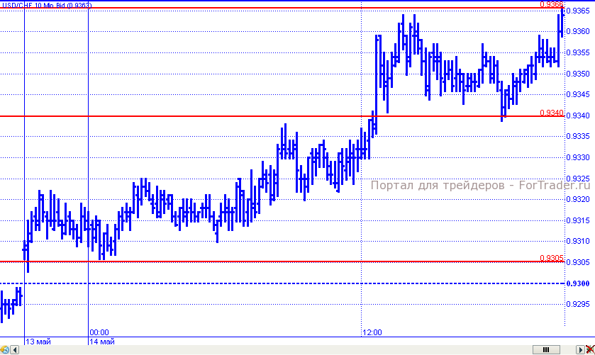 В понедельник пара доллар/франк начала торги выше уровня 0,9300 и в течение дня постепенно двигалась вверх. В рамках роста цены преодолели сопротивление 0,9340 и достигли внутридневного максимума на уровне 0,9366. Однако, продолжить восходящее движение пара не смогла и оставшуюся часть торговых суток консолидировалась в пределах узкого диапазона 0,9340 – 0,9366.
