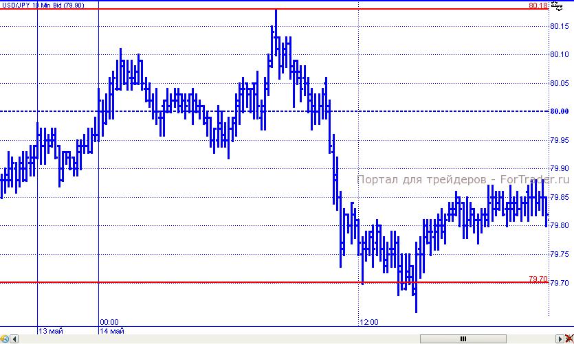В понедельник пара доллар/иена в начале торговых суток все же смогла преодолеть уровень сопротивления 80,00. Максимум дня был зафиксирован на уровне 80,18. Однако, в дальнейшем бегство от рисков все же оказало иене поддержку и пара устремилась вниз к уровню 79,70. Попытка пройти этот барьер успехом не увенчалась и к закрытию дня цены откатились к уровню 79,85.