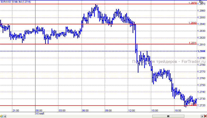 И еще один день, который евро завершил с потерями против доллара. Во вторник в первой половине торговых суток пара начала восходящую коррекцию, в рамках которой смогла зафиксироваться выше уровня 1,2840 и продолжила подъем к внутридневному максимуму на уровне 1,2870. Но особых поводов для укрепления у евро нет, поэтому довольно быстро пара возобновила нисходящее движение, которое после американских отчетов только ускорилось. Евро/доллар преодолел поддержку на 1,2800/1,2780 и к закрытию дня достиг уровня 1,2720.