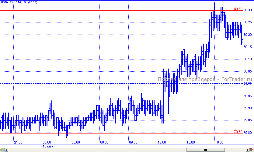 Во вторник пара доллар/иена начала торги скучно в пределах узкого диапазона 79,80 – 79,95. Все изменила американская сессия. Опубликованная статистика по экономике США оказала доллару существенную поддержку, что спровоцировало прорыв парой сопротивления 80,00 и продолжение роста к уровню 80,30/80,40, который и сдержал восходящее движение. К завершению торговых суток цены откатились к отметке 80,20.