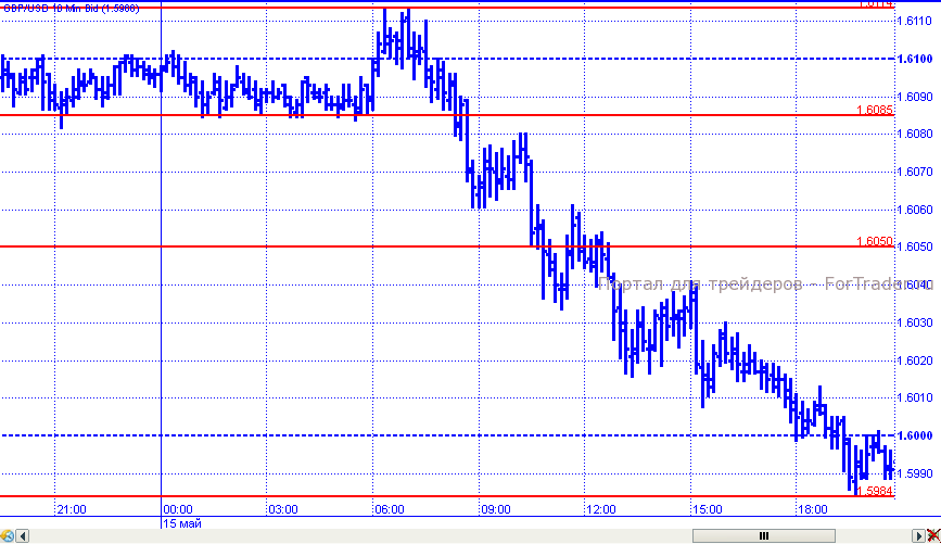 Торговые сутки во вторник пара начала консолидируясь в районе уровня 1,6085, от которого отскочила к отметке 1,6114. Но в дальнейшем нисходящее движение возобновилось. Цены преодолели уровень 1,6050 и продолжили движение вниз к ключевой поддержке 1,6000. К закрытию торгового дня цены обновили месячный минимум на 1,5984, в районе которого и завершили торги.