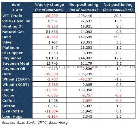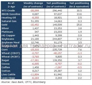 Теперь номинальная экспозиция составляет 115,5 миллиардов долларов, т.е. по сравнению с предыдущей неделей она уменьшилась на 5 миллиардов. Уменьшение экспозиции было главным образом обусловлено сокращением позиций по основным сырьевым товарам нефти сорта WTI (на 4,2 млрд долларов) и золота (на 2 млрд долларов) и было лишь незначительно компенсировано продолжающимися покупками соевых бобов (+1,8 млрд долларов).
