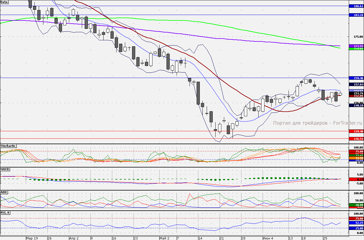 Ближайшие уровни поддержки: 152,86/150,00/145,00